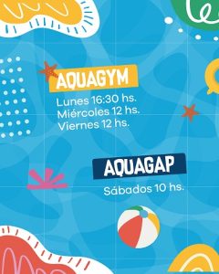 En primera instancia, los días y horarios de aquagym son los lunes a partir de las 16:30 y los miércoles y viernes desde las 12.